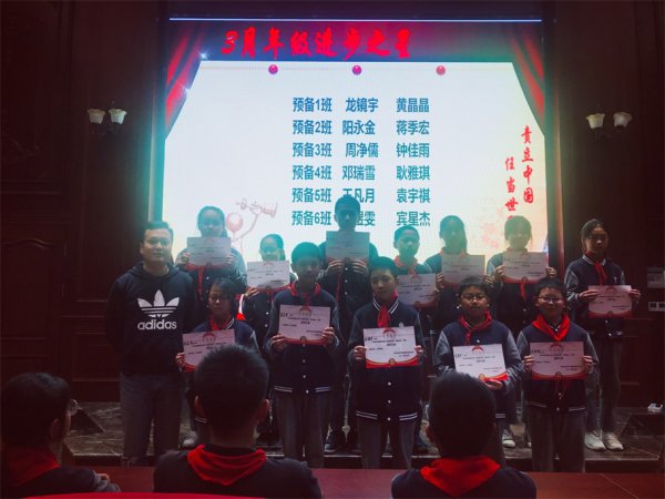 如何从不同角度,不同阶段针对不同层次的学生进行过程性评价是预备年级一直在思考的问题。为了更广泛更有效地鼓励同学们学习,塑造榜样力量,本次表彰大会设置了学习之星、进步之星、年级前20名等奖项,获得各类奖项学生人数很多。努力,不是为了超过别人,而是为了超越昨天的自己。陈永红校长,戴浪主任、黄琳主任、李洲书记纷纷上台颁奖,在老师们的引领下,孩子们对同学取得的进步给予真诚的祝贺。