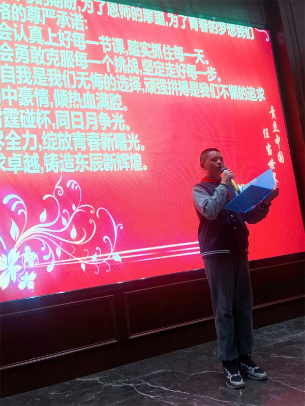 表彰会的最后,由预备五班李彧卓同学进行领誓。同学们认真喊出的一句句铿锵誓言无疑是对自己的一种鞭策和激励,努力拼搏的学习精神在这一刻得到新的砥砺,思想随之得到新的提升。