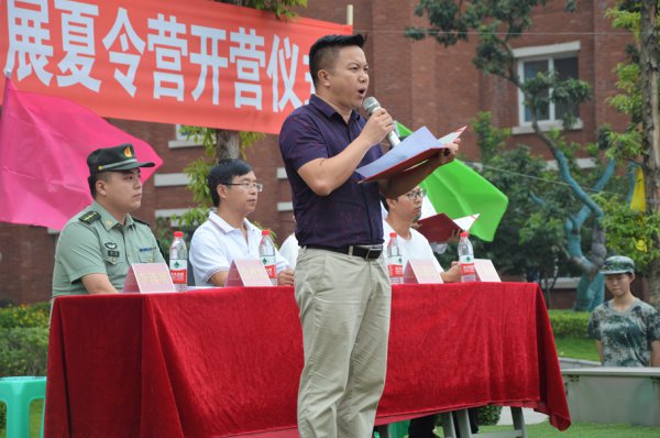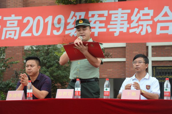 仪式第一项,高中部学生发展中心主任李清明作活动动员。“军训,是人生的另一个课堂,是又一次起跑。一次军训,终身受益,”李主任从强健身体、锻炼意志、学习技能等方面强调了训练的目的和意义,他希望同学们,“要迎难而上,用你们的言行宣告你们的到来,用你们的行动展现高2019级新生的青春风采。”