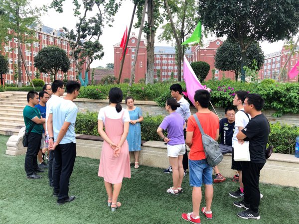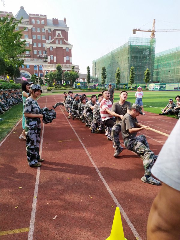 拔河比赛。拔河有战术,姿势很重要。老师们都是行家,也是总指挥。每个小组人数不同,学生不够,老师来凑。