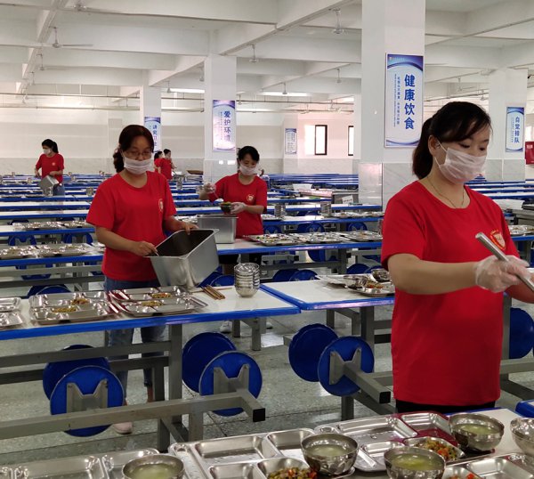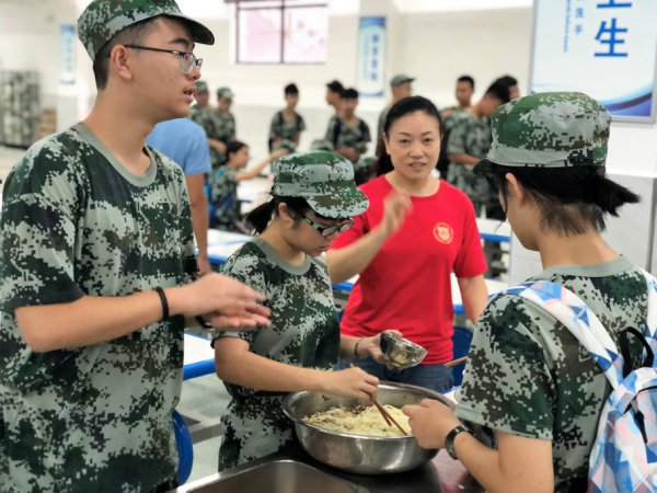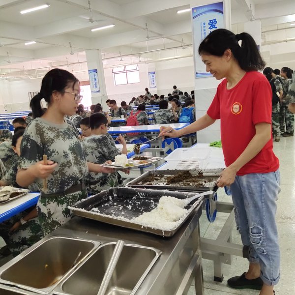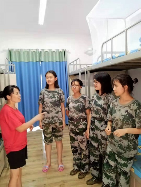 就餐前,安排好各个营队的伙食,协助营长们维持就餐的秩序;就寝前,认真清点人数,守护学生安全的最后一道防线。最早醒来的是他们,最晚入睡的是他们。有她们在,寝室才像一个“家”。为生活老师们点赞!