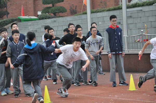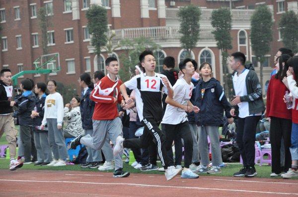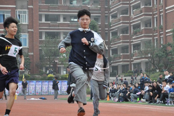 一声清越的口哨声,起跑线上的学生如离弦之箭,奋力挥臂、跨步狂奔,冲刺!震耳的呼声久久不散。比赛正式开始了!