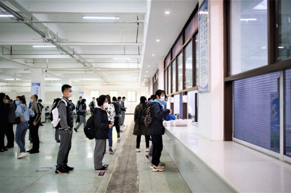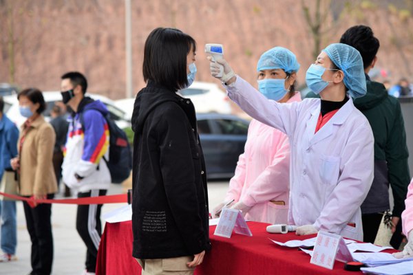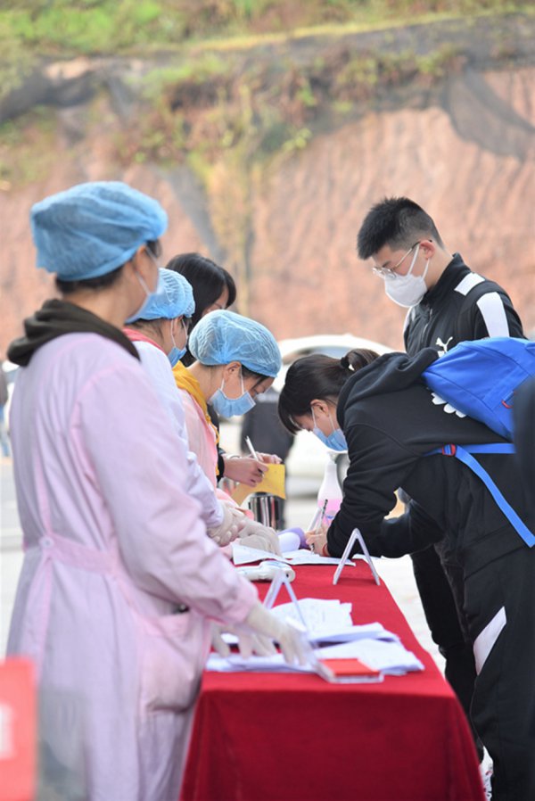 为了保证学校这方净土不被病毒侵犯,同学们迈着轻盈的步伐经过层层“关卡”进入校园