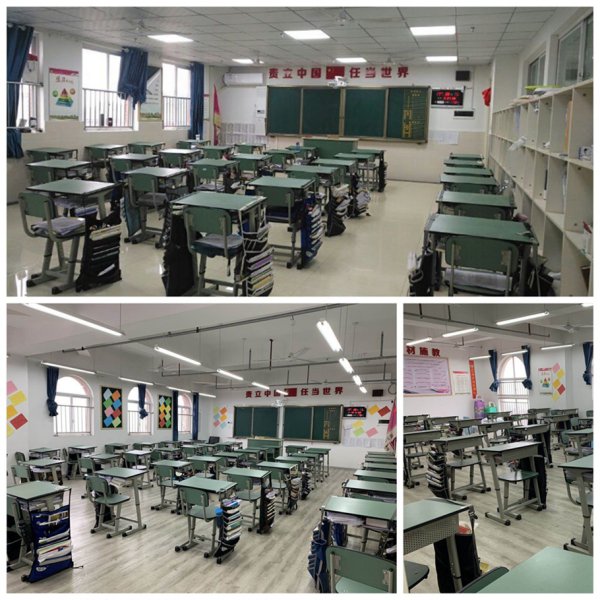 教室窗明几净,桌凳整齐有序,这是开学前高三年级的老师们精心为孩子们布置的温暖小窝