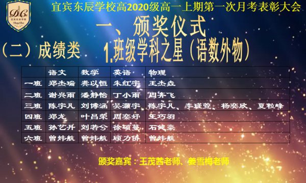 表彰大会由郑鑫楠、杨辰轩两位同学主持。