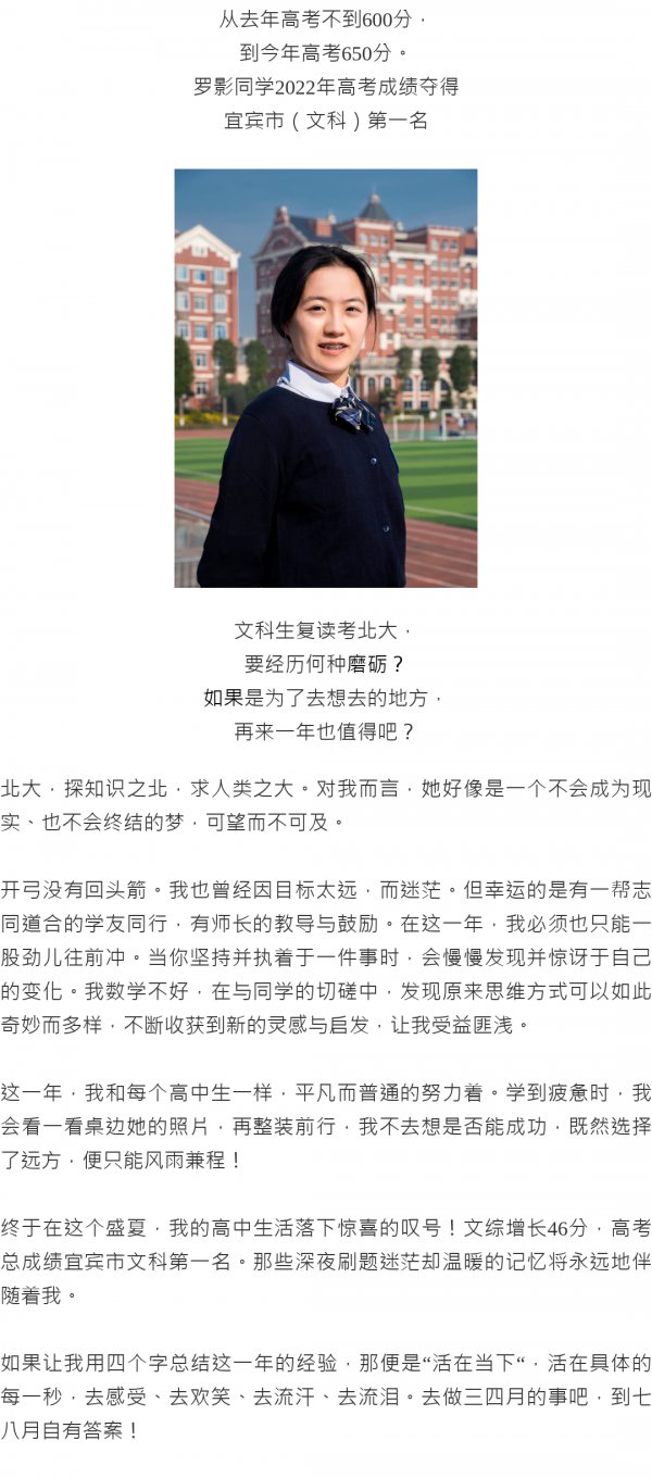 复读一年涨58分,?宜宾东辰罗影同学圆梦北大!