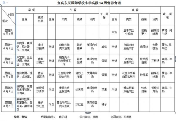 【后期服务】14周营养食谱