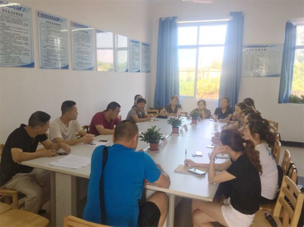 ▲校车队长周春召集校车驾驶员和随车老师进行岗位职责、安全管理、微笑服务培训。