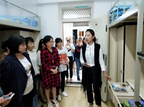 ▲生活部长召集生活老师现场观摩学习内务整理。