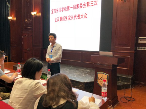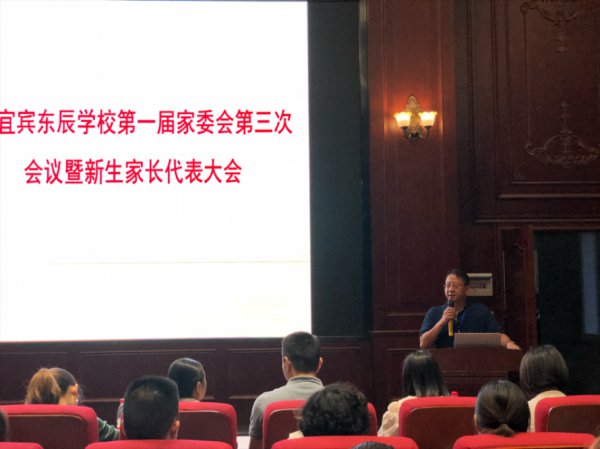 会议由戴浪主任主持,他首先向与会的家长代表表达感谢与欢迎,感谢大家在百忙之中抽空来参加家长委员会会议,感谢大家对东辰教育发展的关心,感谢大家对宜宾东辰的信任,感谢大家对学校教育教学工作的鼎力支持。
